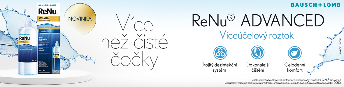 ReNu® Advanced je vhodný na všechny měkké kontaktní čočky. Kombinuje tři dezinfekční a dvě povrchově aktivní látky, které poskytují vynikající dezinfekci, vyčištění kontaktních čoček a celodenní pohodlí.